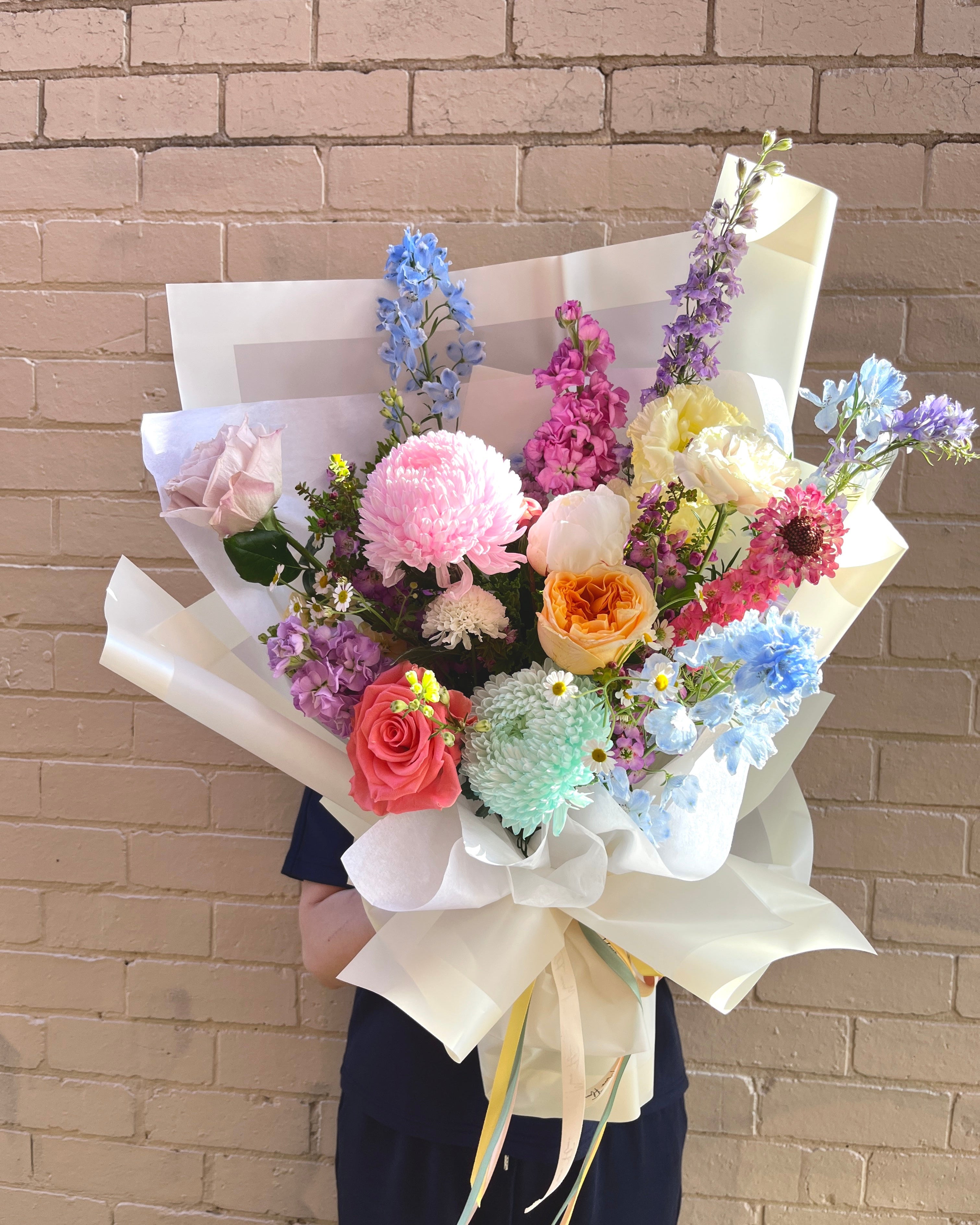 This bouquet straight out of a fairytale, pastel daydream enchants with its soft, ethereal palette and playful texture.